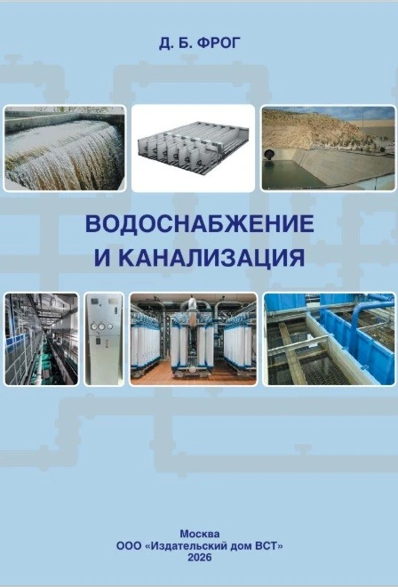 Учебник. Водоснабжение и канализация. Автор: Д.Б. Фрог – Москва.: Издательский дом ВСТ, 2026. – 208 с. ISBN 978-5-6050841-1-2, Тираж – 500 экз.