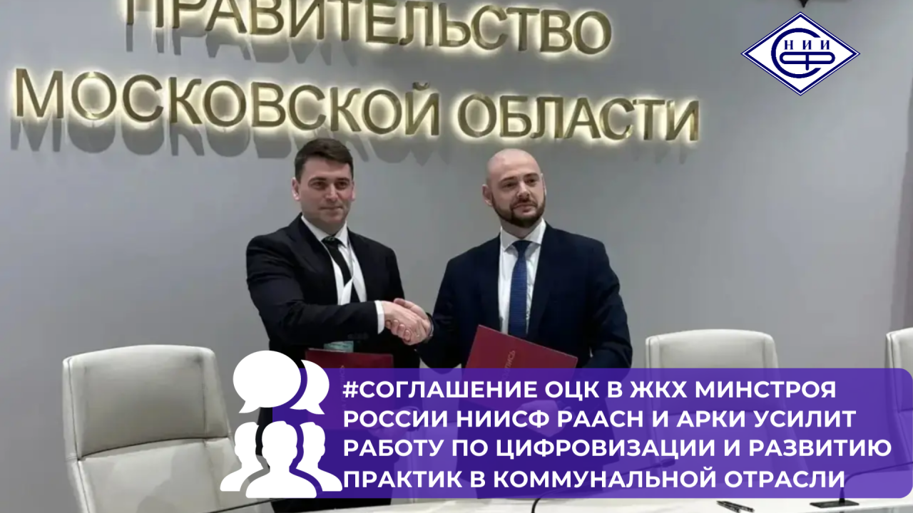 Одним из событий форума стало подписание соглашения о сотрудничестве между Отраслевым центром компетенций в ЖКХ Минстроя России НИИСФ РААСН и ГКУ Московской области «Агентство развития коммунальной инфраструктуры».