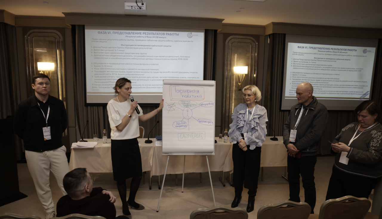 Во второй половине дня состоялась презентация и защита разработанных дорожных карт. Представители групп представили свои решения перед экспертами НИИСФ РААСН и ОЦК в ЖКХ Минстроя России, получили рекомендации по уточнению целей, этапов реализации и механизмов мониторинга результатов. В процессе обсуждения предложения были доработаны и консолидированы, что позволило сформировать основу для дальнейшей системной работы в регионе.