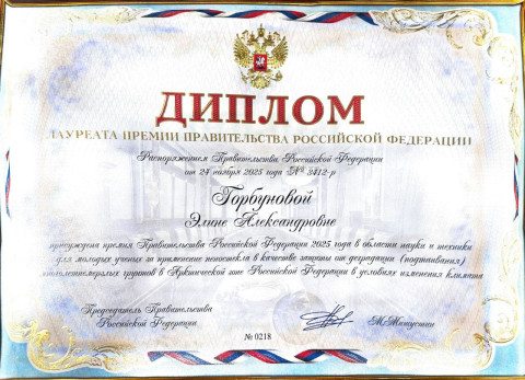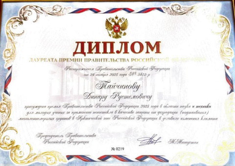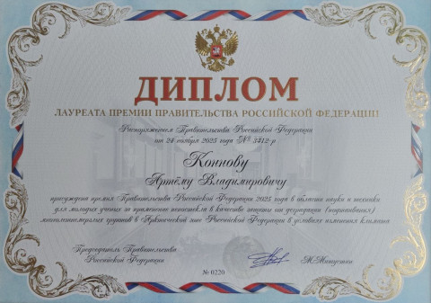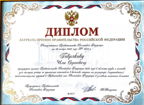 22 декабря 2025 года в Министерстве науки и высшего образования Российской Федерации состоялось вручение премий Правительства Российской Федерации 2025 года в области науки и техники для молодых ученых.