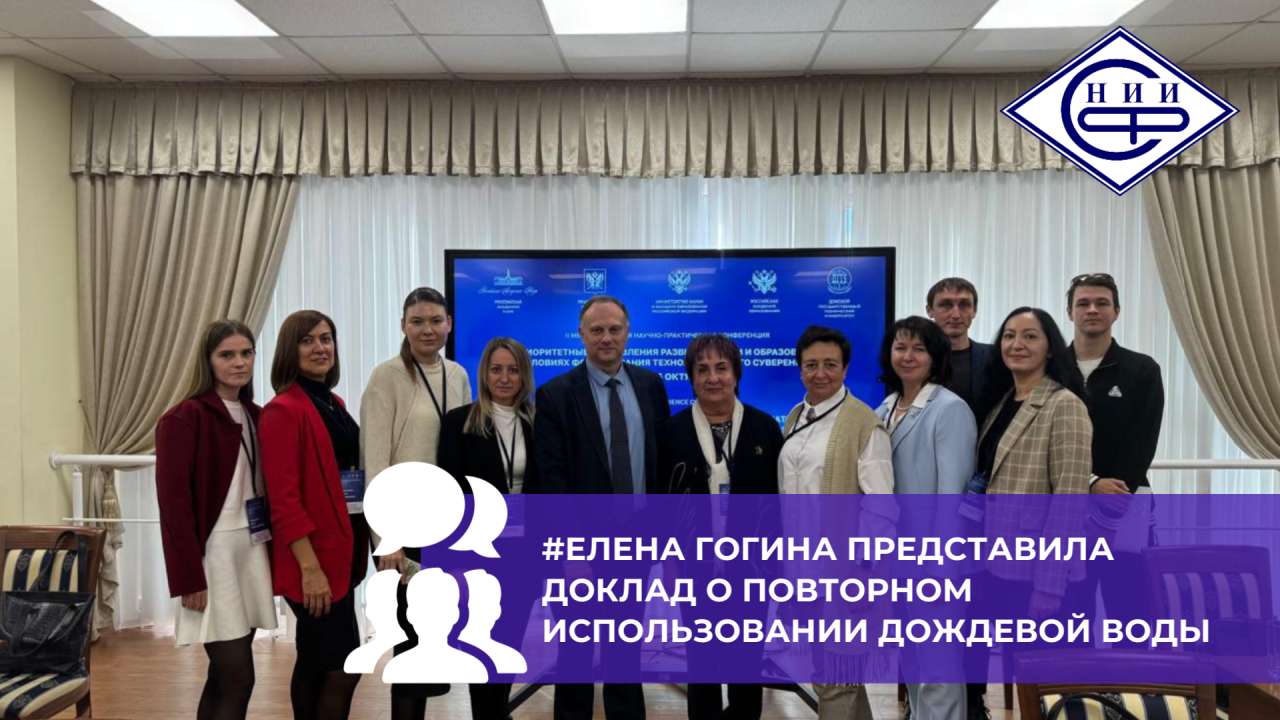 15-16 октября 2025 года главный научный сотрудник лаборатории «Технология очистки природных и сточных вод» НИИСФ РААСН, к.т.н. Гогина Елена Сергеевна приняла участие в Пленарном заседании II Международной научно-практической конференции «Приоритетные направления развития науки и образования в условиях формирования технологического суверенитета», приуроченной к 95-летнему юбилею Донского государственного технического университета.