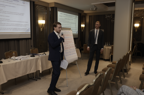 Работа второго дня началась с установочной сессии, которую провели заместитель директора НИИСФ РААСН, руководитель ОЦК в ЖКХ Минстроя России Алина Анатольевна Постовалова и её заместитель Александр Владимирович Долматов. Они обозначили ключевые задачи дня, сфокусированные на формировании региональной стратегии повышения производительности, и задали рамки практической работы. Эксперт ОЦК в ЖКХ Минстроя России Андрей Вячеславович Артемьев представил подходы к разработке региональных стратегий, показав, как объединить цели развития, инструменты управления и реальные ресурсы отрасли в единую логическую конструкцию.